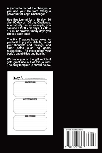 This Journal Up To 100 Days of Hot Yoga Challenge is the perfect way to record the changes to you and your life from taking a powerful Hot Yoga Challenge!