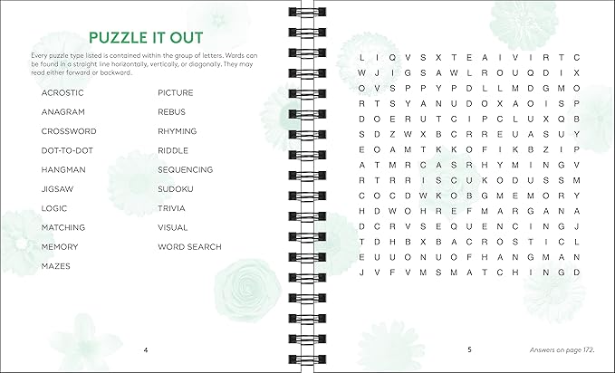 • The word search puzzles cover a variety of themes, and will keep your mind engaged without stressing you out.