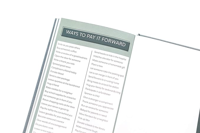While the simple act of expressing gratitude is life-changing for the individual, paying that gratitude forward begins to change the world, one small moment at a time. Focusing your energy on being of service and improving the lives of others is the cornerstone of every spiritual journey, self reflection, or therapy. Each page of the Gratitude Journal for Women offers a dedicated section to paying it forward, listing out what it is you plan to do, so you never lose sight of your meaning and purpose.