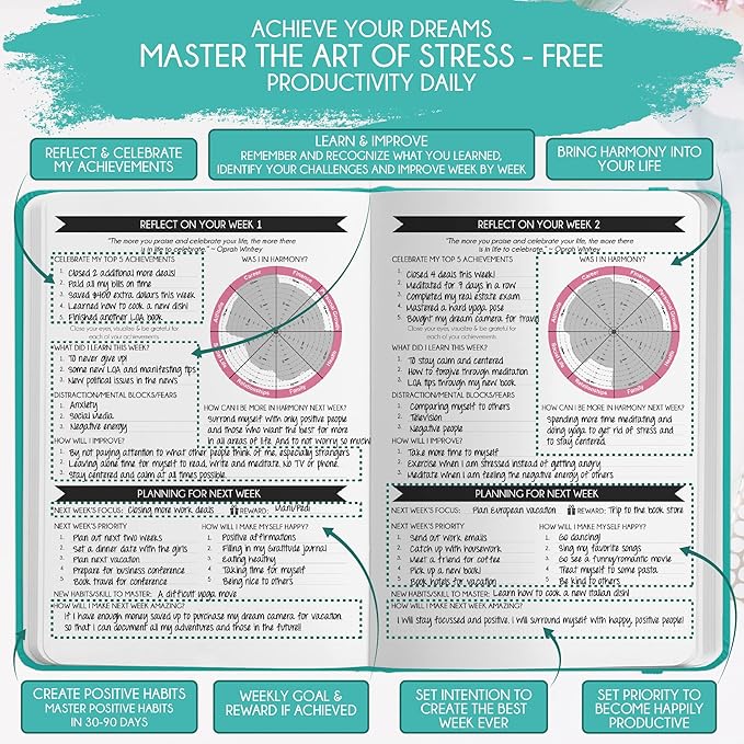 Regularly review your progress, make necessary adjustments, and celebrate your victories. Use an [undated planner] or [planner notebook] for reflection and improvement. Celebrate your achievements with a Law of Attraction Planner to document your journey and stay motivated.