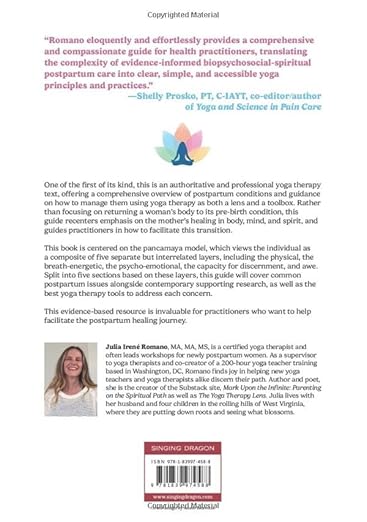 One of the first of its kind, this is an authoritative and professional yoga therapy text offering a comprehensive overview of postpartum conditions and guidance on how to manage them using yoga therapy as both a lens and a toolbox. Rather than focussing on returning a woman's body to its pre-birth condition, this guide recentres emphasis on the mother's healing in body, mind, and spirit and guides practitioners in how to facilitate this transition.
